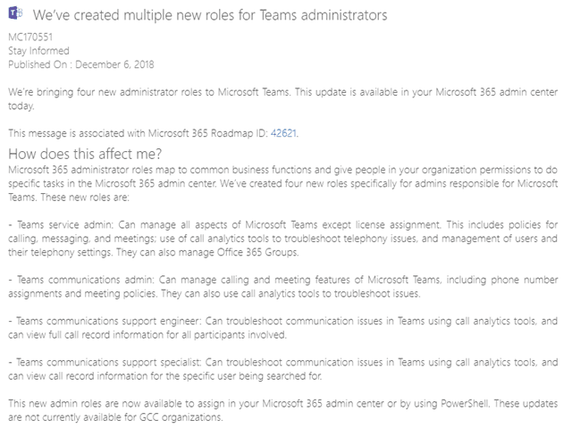 Fortunately, Microsoft Teams does have a number of RBAC roles. 4 new roles have just been enabled.
