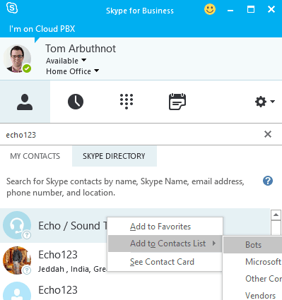 […] Add Skype Consumer or Skype for Business Server Audio Test Service Bot to a Cloud PBX User […]