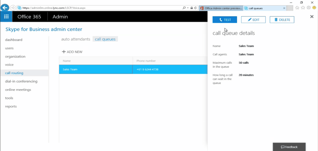 - Test button, is just a click to call link to launch SfB client to call that E.164 number (saving you having to dial it)