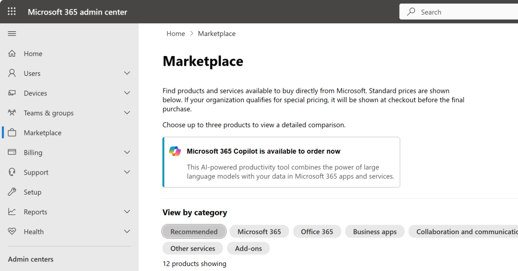 Steps to buy Copilot for Microsoft 365 – These are the steps I went through on my tenant with Business Premium licenses.