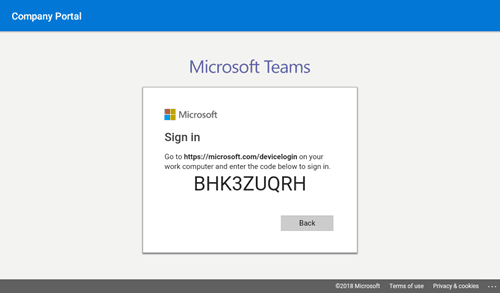 After successful sign-in, the user can choose whether the device will be used for personal use or in a shared conference room.