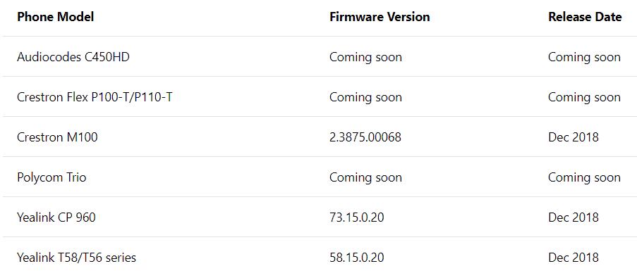 It’s official, both on the Microsoft documentation and the Yealink website, Yealink phones are the first generally available IP Phones Microsoft Teams. From the Microsoft documentation, it also looks like the Crestron M100 is GA, with more Crestron phones coming soon.