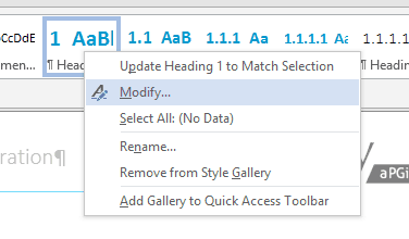 Once all Headings are set to no numbering, select a heading set to heading one