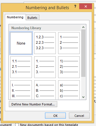 - For each Heading, Modify / Numbering / None / OK