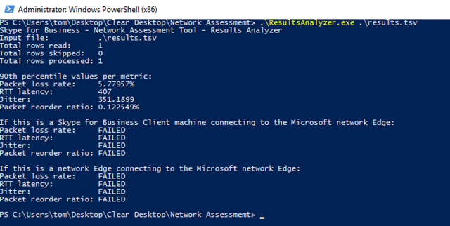 Free Skype for Business Online Network Assessment Tool from Microsoft, Hands On