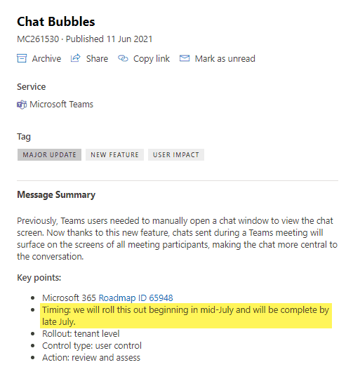 Some features may be targeted first at specific tenant types, for example, Education tenants get lots of specific Teams features.