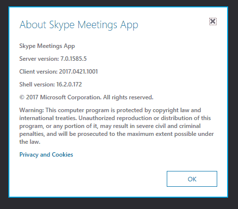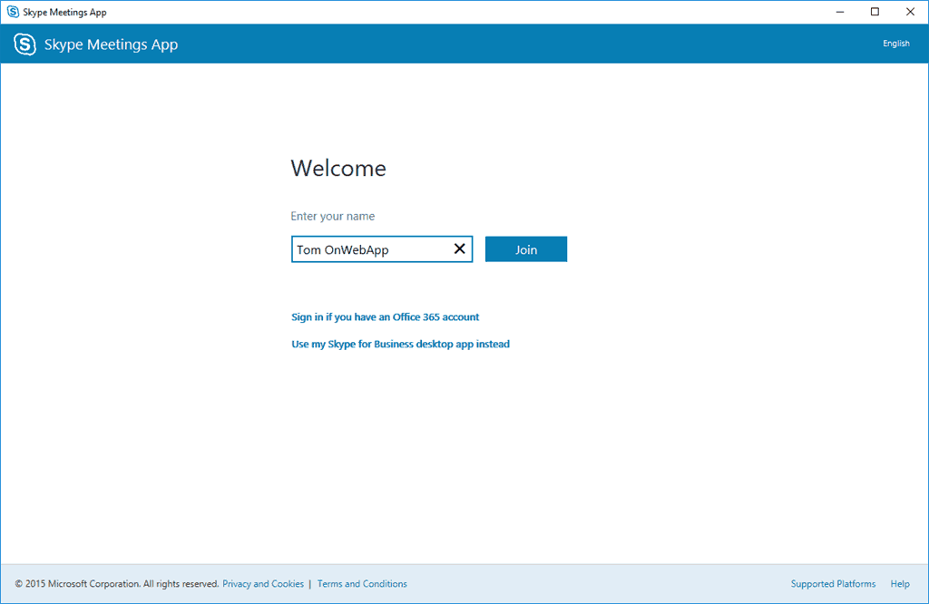 Looks like this is now rolled out to Skype for Business Online. A much prettier experience. Before you ask still no WebRTC/plugin-less join, we’re seeing WebRTC/ORTC progress on the Skype consumer side, hopefully, this makes it’s way to Skype for Business soon.