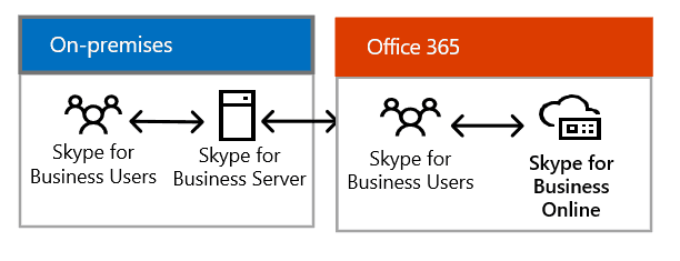 In this scenario, Skype for Business Server and Skype for Business Online are set up to work together in the same topology, users can be homed either on Skype for Business server or Skype for Business Online, with the same SIP domain, and can communicate seamlessly.