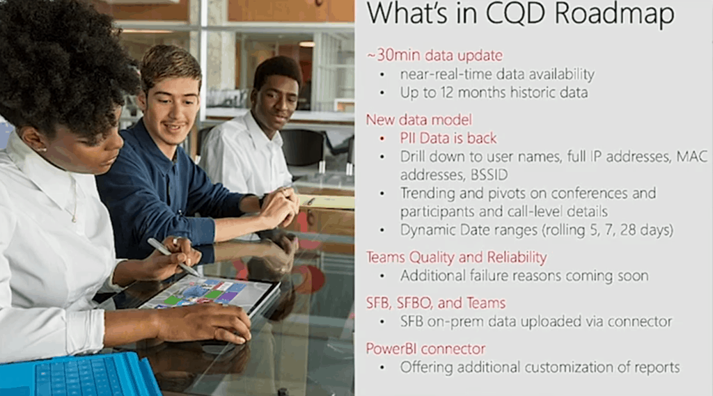 Ignite 2018 session BRK3169, Understanding calling usage and diagnosing call failures in Microsoft Teams (recording, blog), gave some good insight into what is coming in the latest version of CQD.
