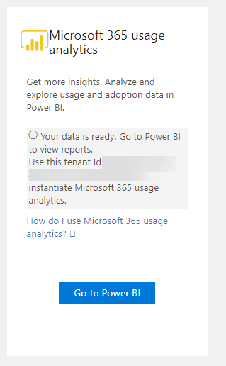 Enter your tenant ID, found on the “Microsoft 365 Usage Analytics” button in the Office 365 portal, or find it here