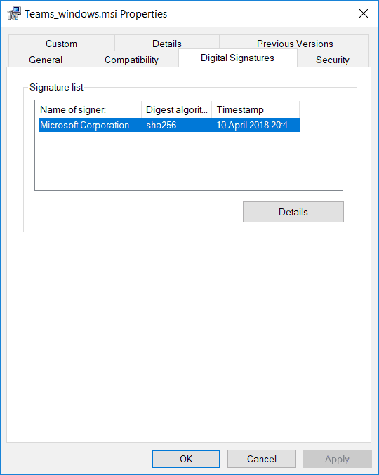 Oddly, the MSI doesn’t even seem to be signed by Microsoft
