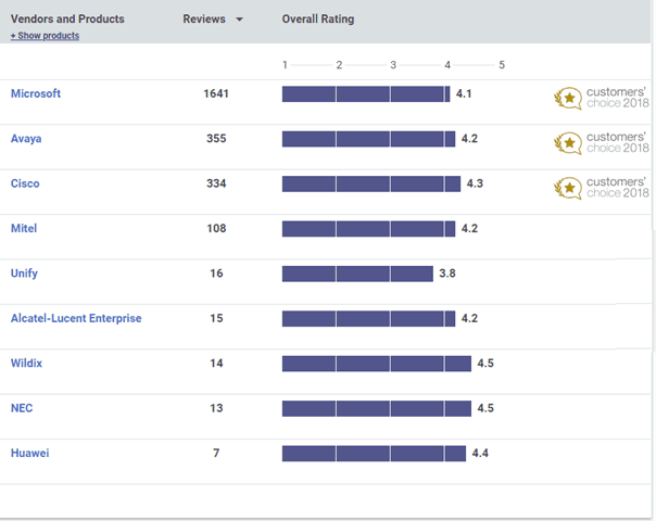 This award reflects feedback on Lync 2010, Lync 2013 and Skype for Business. Not Teams since that’s a cloud only service (so falls into the UCaaS category). This is based on 1608 verified customer reviews.
