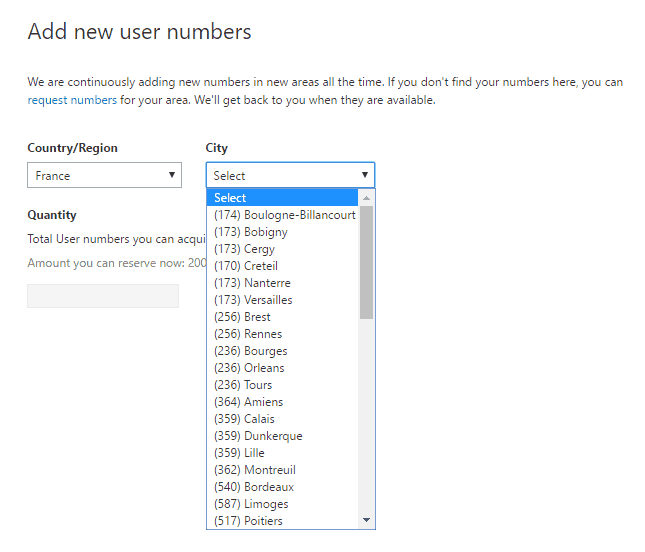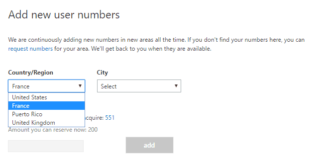 Often it’s really hard to get numbers for capital/major city area codes, It’s also a challenge for London and New York, often the area codes are maxed out. Not making excuses, I would rather it’s there, but it’s not a Microsoft specific issue, but often a general carrier challenge.