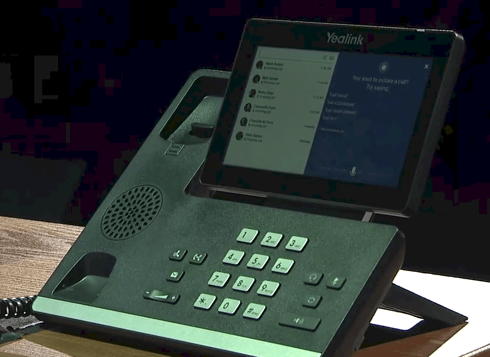 Creating a conference call just by lifting the receiver and saying the people you want to call: