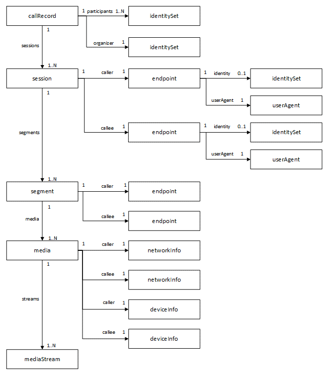 - callRecord – represents a single peer-to-peer call or a group call between multiple participants