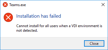 Technically, you have been able to run Microsoft Teams desktop client (Electron) in a VDI environment for some time, as long as you turned off all the audio/video/media functionality. However, this wasn’t very practical for the typical way VDI is deployed and managed, up until now Teams desktop App would install in the user App folder this means it couldn’t be placed on the base image of non-persistent VDI environments.