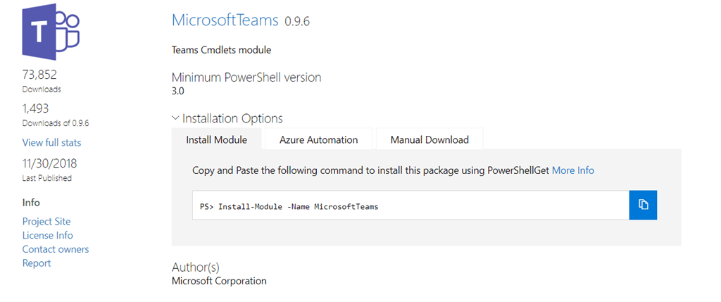 https://www.powershellgallery.com/packages/MicrosoftTeams/0.9.6