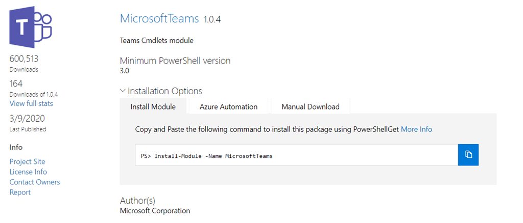 Install it simply by running Install-Module -Name MicrosoftTeams