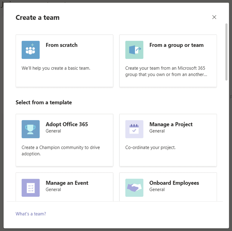 Org-wide, which is a special type of team that automatically adds everyone in the organisation organization to be a part of a single team for collaboration. You can make more than one Org-wide team should you want to. Only Global admins can create an org-wide team by using the Teams client. This is up to 10,000 members at the time of writing. Note: org-wide teams aren’t yet available for Teams for Education.