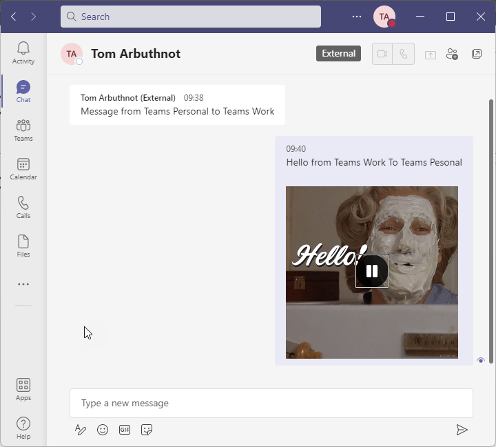 I’ll stick with Teams Work and Teams Personal for ease. Previously, these two worlds were separate. While a work account in company A could chat and call a work account in company B, Work and personal accounts could not directly communicate. Now Teams Consumer users can Chat with Teams Commercial users. Meaning you can use your work account to talk to friends and family, maybe even some SMBs on their Consumer accounts. We used to call this “Federation” in Skype for the business world, but that term seems to have dropped out of fashion a bit. This functionality has been available between Teams Work and Skype Consumer/Personal accounts for some time.