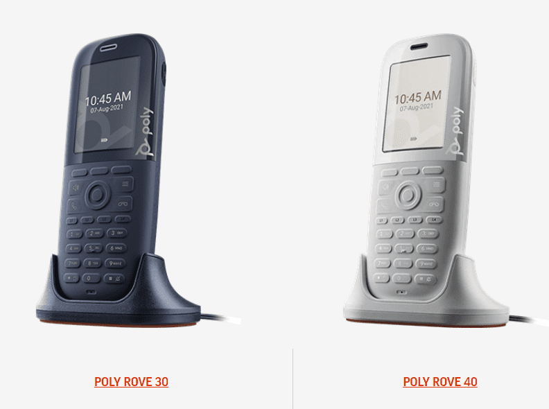 Poly has the Rove 30 and Rove 40 handsets and associated B2 and B4 bases certified. The handsets are Ruggedized and IP65-rated, and one of their unique features is the Microban antimicrobial protection. They also have wipe over easy clean keys.