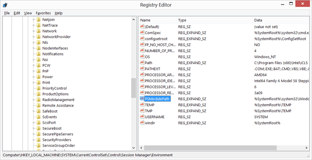 Set-ItemProperty -Path ‘Registry::HKEY_LOCAL_MACHINE\System\CurrentControlSet\Control\Session Manager\Environment’ -Name PSModulePath –Value $newPath