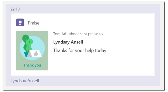 My organization is yet to enable praise in teams. I needed to check few things before that.