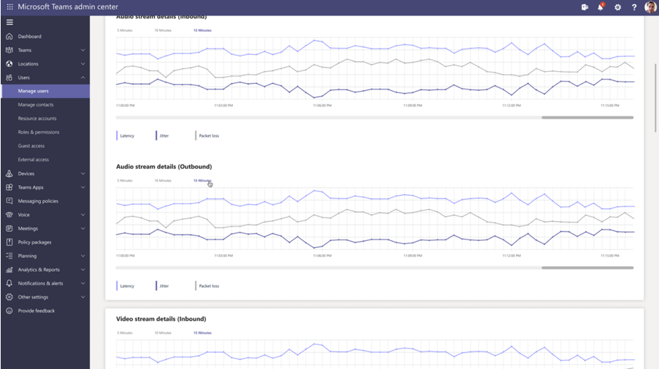 Unfortunately, it was a low res screenshot, but it looks like real-time graphs of network performance in the Teams Admin Center