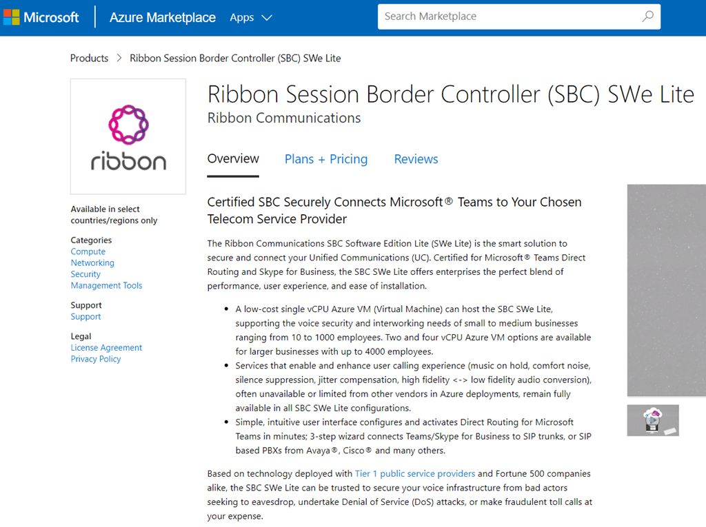 OK I’m a little late to blog this one (sorry, blog backlog!), Ribbon have joined AudioCodes and Anynode by having a Teams Direct Routing certified SBC being available in the Azure Marketplace.