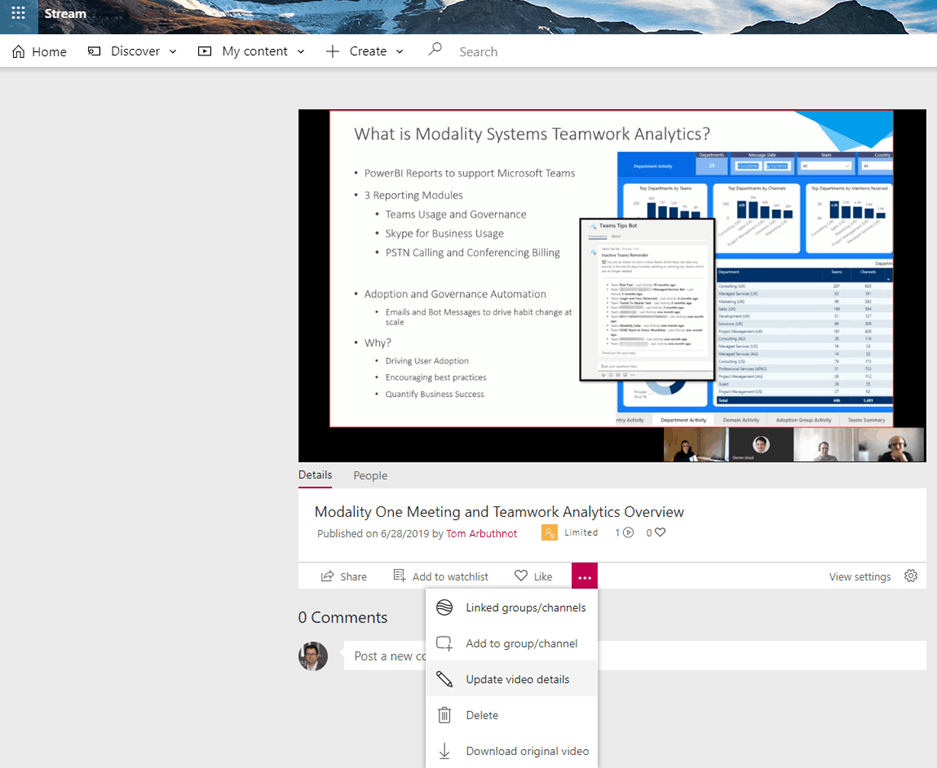 Microsoft Teams has a great ability to record a meeting in the cloud and automatically store it in Microsoft Stream.