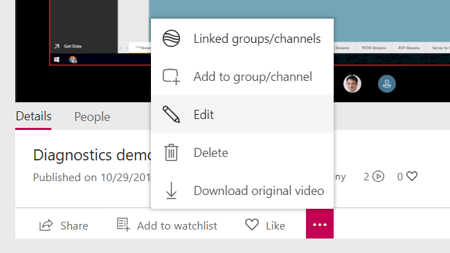 In Stream, the organiser can hit the ellipses and download the original video to a Onedrive folder: