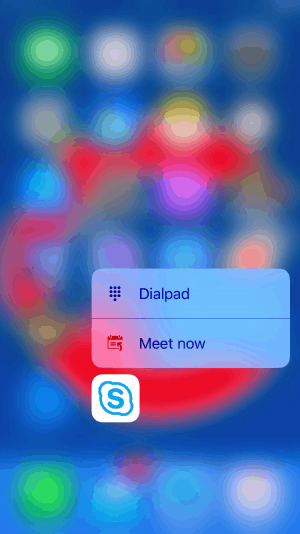 Bonus feature, for those with an iPhone with “3D Touch” (6s/7), a press on the app icon allows the immediate launch of a meet now and dial pad (though some seem to not get the dial pad). Thanks, Simon Barratt and Jason Wynn for sending screenshots :-)