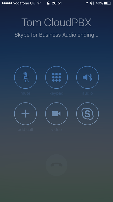 - While you are on a SfB call, incoming mobile calls are handled nicely with an End, Hold or Send to Voicemail screen