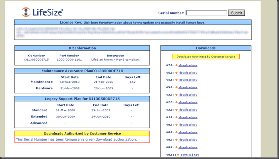 Note you will need to be under support with LifeSize to get access to the latest firmware, and unfortunately they will charge you a recertification fee if you fall out of support and want to be covered again.