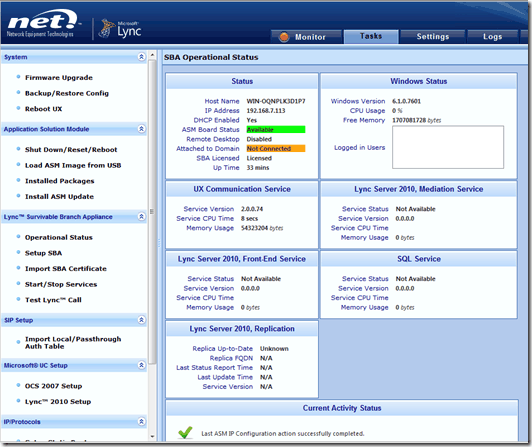 Here are some quick screenshots walking through the setup of a UX1000 with the SBA module for Lync. From a setup point of view you…