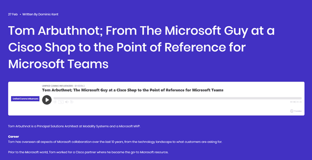 His podcast is about diving a bit more into the background of the people in Unified Comms, it’s a great listen.