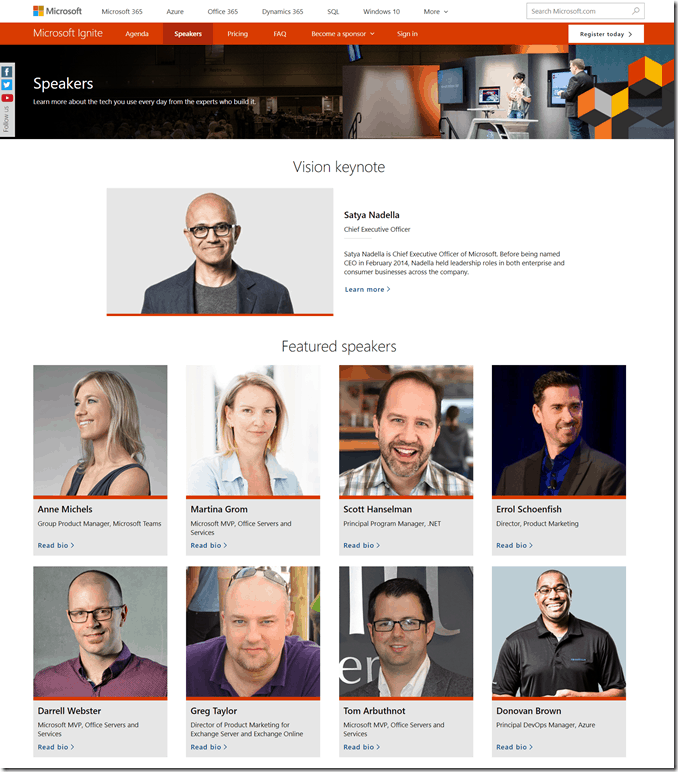 It’s not everyday you are on the same speaker page as Satya Nadella as a featured speaker.