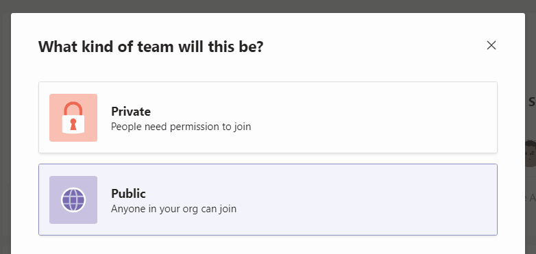 I’m not in love with the names as these types have no bearing as to there being external guests (from other organisations/tenants) in the team. Open and Closed might make more sense, but it is what it is.
