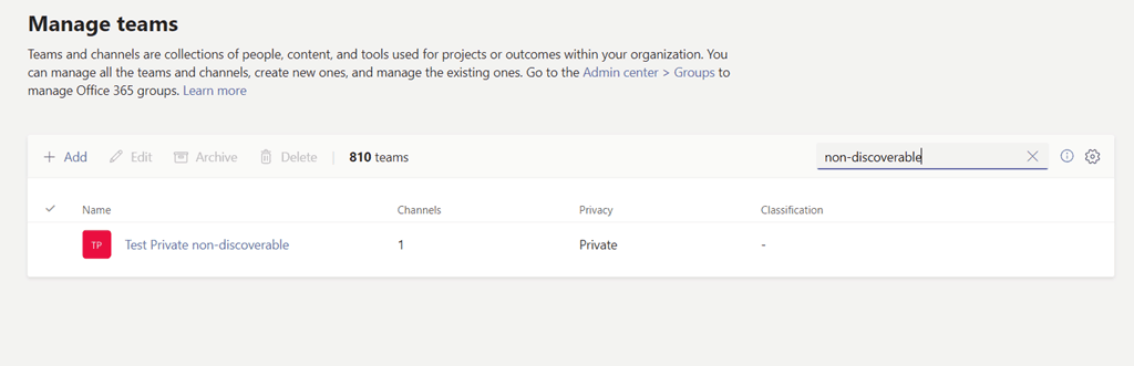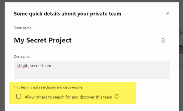 Example hidden / non-discoverable team – there is no way to know its non-discoverable.