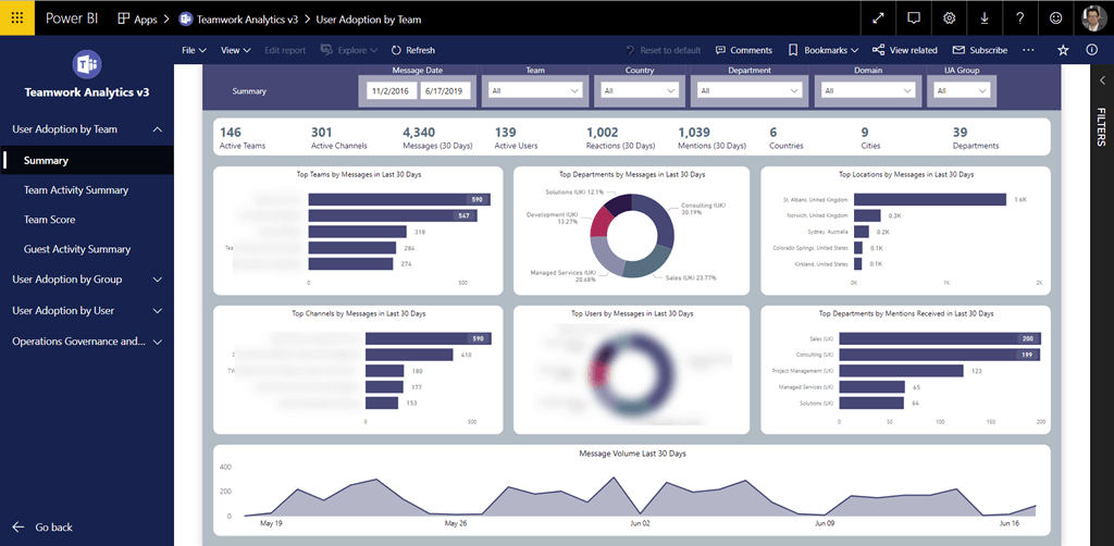 I’ll be showing how we use our Teamwork Analytics PowerBI reporting of detailed Microsoft Teams data and our adoption automation through both email and bots to support Microsoft Teams success at scale.